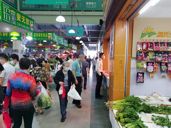 3月13日,深圳市疫情防控繼續(xù)加碼,當(dāng)晚全市各店鋪出現(xiàn)不同程度排隊(duì)購(gòu)菜、果蔬生鮮售罄的現(xiàn)象。龍華區(qū)地處深圳市中軸,外來(lái)務(wù)工人員、工業(yè)廠區(qū)集中分布,面對(duì)防疫工作的加緊,保障轄區(qū)居民農(nóng)產(chǎn)品日常需求壓力更大。
