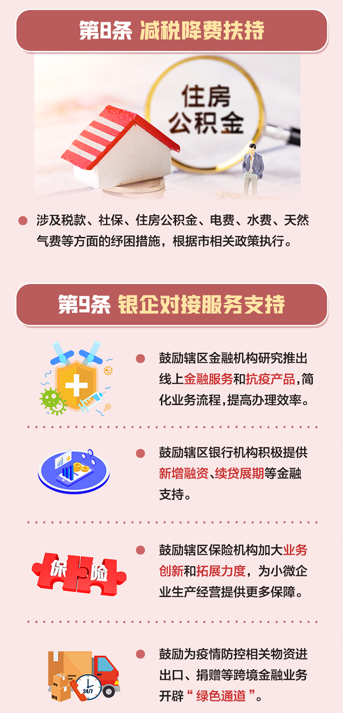 9.對南山區住宿餐飲、交通運輸、文化旅游、零售、體育等行業的重點企業在2022年2月16日至4月30日,通過融資性擔保機構擔保獲得銀行貸款的,按實際支付擔保費用最高50%給予資助,每家企業不超過20萬元。(責任單位:區金融發展服務中心)